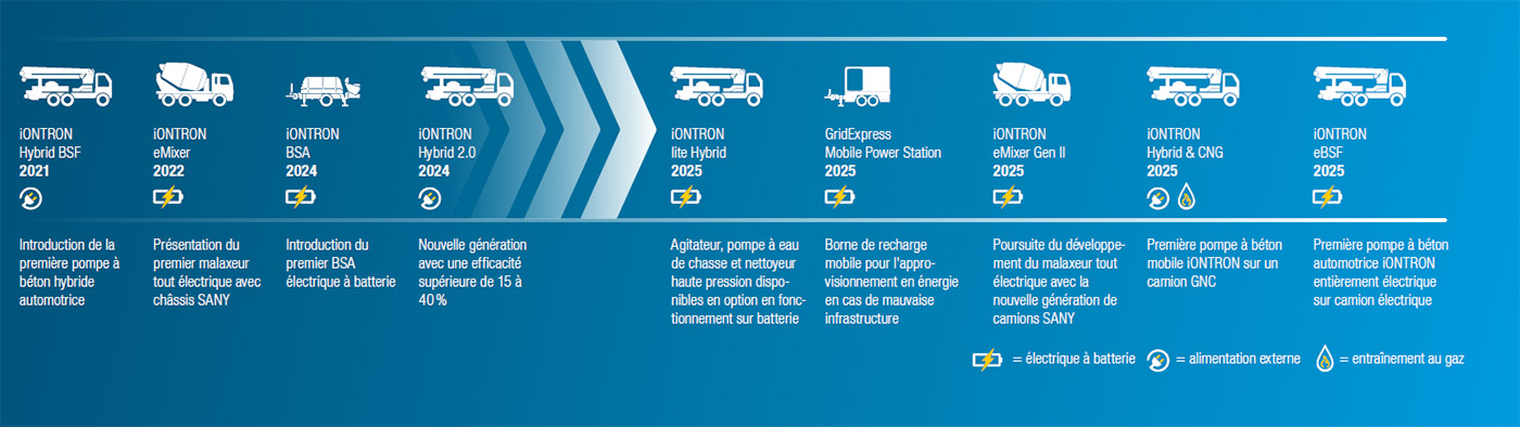 Avec la famille de produits iONTRON, Putzmeister ouvre la voie à un chantier respectueux de l'environnement avec la possibilité de travailler en toute autonomie, indépendamment des sources d'énergie externes. Pour presque toutes les situations d'application, vous trouverez la solution efficace et durable avec des émissions de CO2 allant jusqu'à zéro.