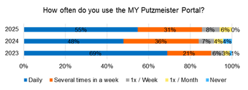 The fourth time in a row we had our global MY Putzmeister user survey online from mid-November 2025 until mid-January 2026. The User survey helps us to get feedback from you regarding information and features within MY Putzmeister, how they are used and how satisfied you are with the digital offers.