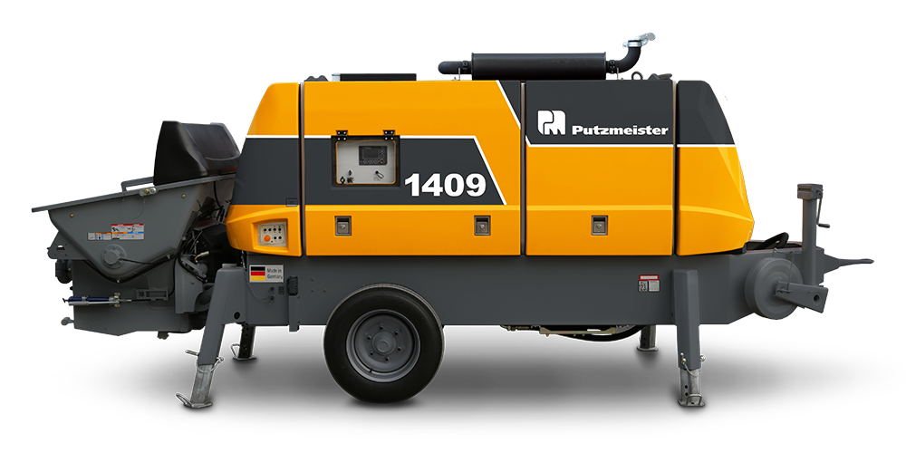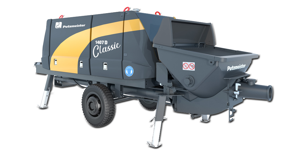 Mobile Betonpumpe auf Stahlraupenfahrwerk mit EU-Stage V, 3-Zylinder-Dieselmotor und Fördervolumen bis zu 64 m³ pro Stunde