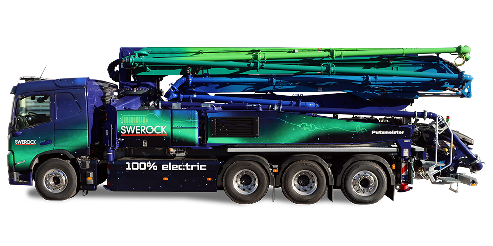 The etruck-mounted concrete pump on a full electric chassis with 150 m³/h Output