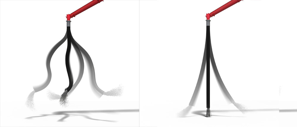 - Smooth, controlled concrete flow virtually eliminates splatter and reduces boom bounce